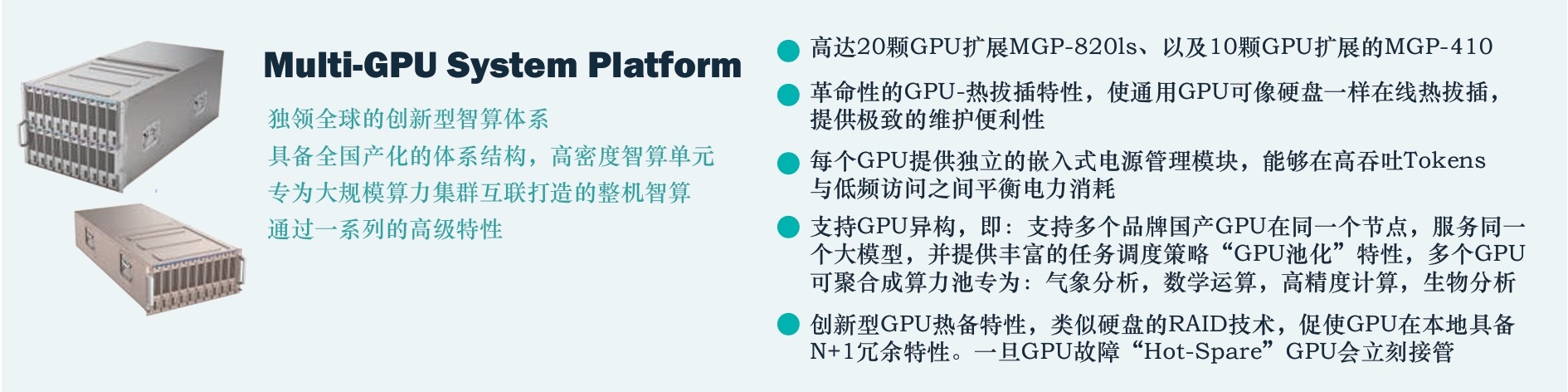 智算大模型一體機(jī)MGP-820ls(20卡)系列 (詳情請(qǐng)點(diǎn)擊 產(chǎn)品規(guī)格書 )