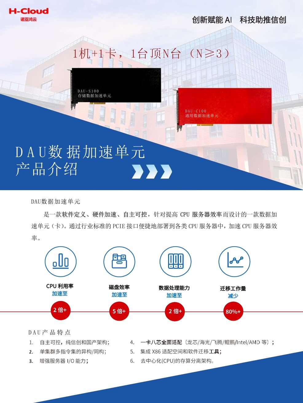 首創(chuàng)+全信創(chuàng) 一卡即“云”,一云多“芯”。DAU-S160存儲數(shù)據(jù)加速單元,開箱即用的超融合/雙活/分布式存儲/云桌面/AI大模型一體機解決方案!