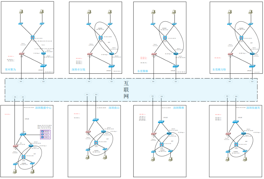 1) SD-wan 虛擬網(wǎng)絡(luò) 思科組網(wǎng)項(xiàng)目,將工廠與托管中心機(jī)房互聯(lián)互通。
